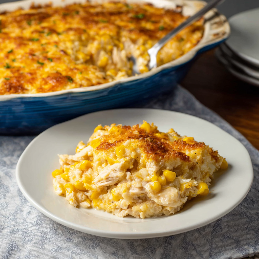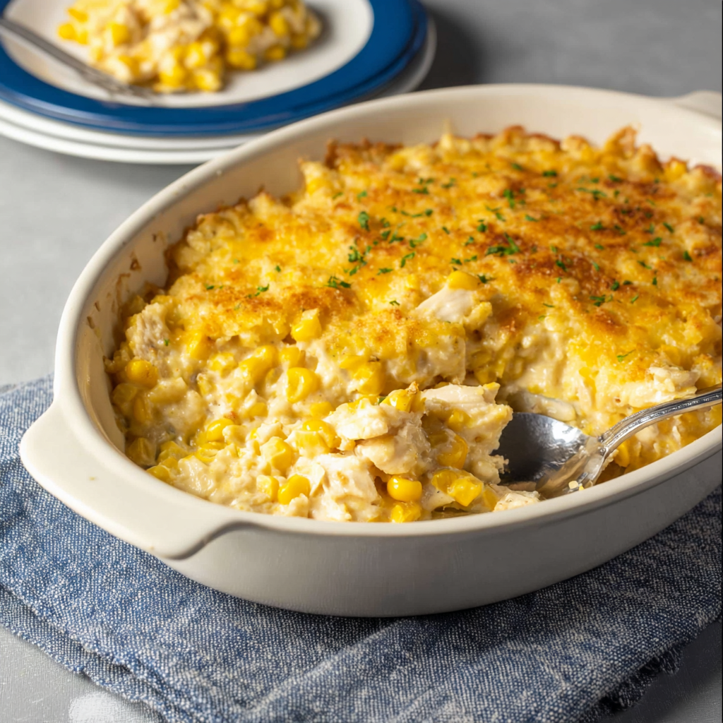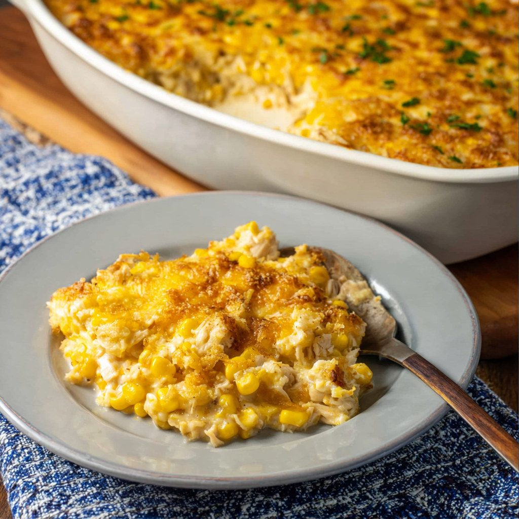 This casserole brings together shredded chicken, sweet corn, buttery noodles, and a rich, creamy sauce baked under a golden topping. Nothing fancy — just real, straightforward flavor. According to comfort food trends, casserole recipes like this one have surged in popularity again because they are budget-friendly, filling, and perfect for family dinners.