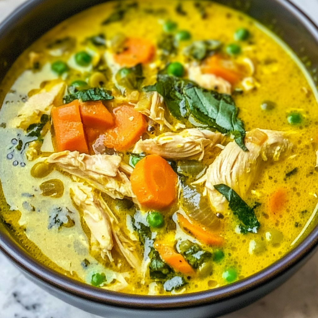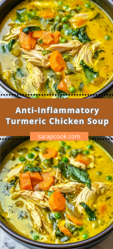 Allow the Anti-Inflammatory Turmeric Chicken Soup to rest for 5 minutes before serving. This brief resting period allows the flavors to harmonize and the therapeutic compounds to fully integrate. Serve in warmed bowls, garnished with additional fresh herbs and a twist of black pepper.