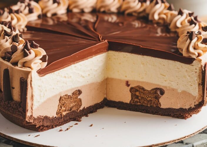 Ingredients: For the Crust: For the Cheesecake Filling: For the Chocolate Cream Layer: For the Topping: Instructions: Tips: Notes: Nutrition (per slice, assuming 12 slices): ...