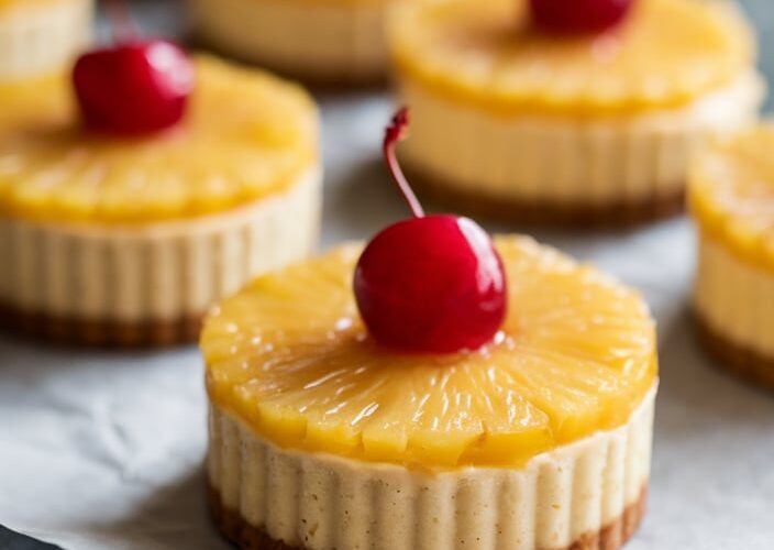 Ingredients: For the Crust: For the Cheesecake Filling: For the Pineapple Topping: Instructions: Tips: Notes: Nutrition (per mini cheesecake, assuming 12 servings): ...