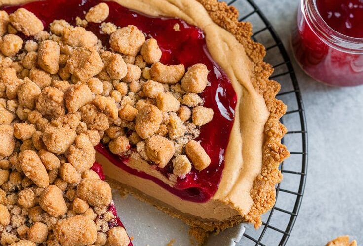 Ingredients: For the Crust: For the Peanut Butter Filling: For the Jelly Layer: For Garnish: Instructions: Tips: Nutrition (per slice, approximate): ...