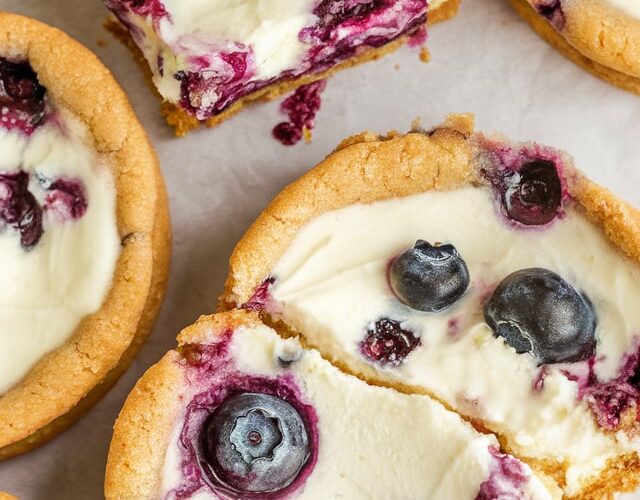 Ingredients: For the Cookie Dough: For the Blueberry Filling: For the Cheesecake Center: Instructions: Tips: Nutrition (per cookie, approximate): ...