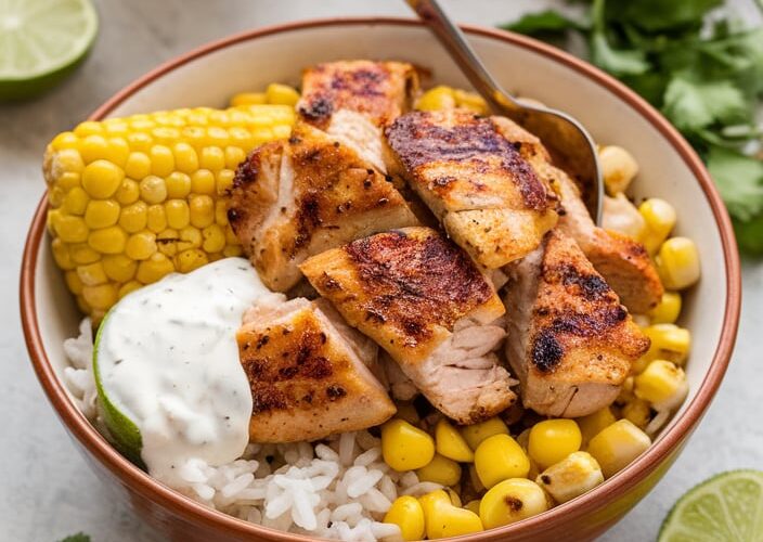 Ingredients: For the Chicken: For the Street Corn: For the Rice: For Garnish (Optional): Instructions: Step 1: Prepare the Chicken Step 2: Prepare the Street Corn Step 3: Prepare the Rice Step 4: Assemble the Bowls Step 5: Serve Tips: Nutrition (Per Serving): ...
