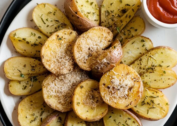 These crispy, golden-brown potatoes with a garlic Parmesan crust are absolutely irresistible! Packed with flavor and an ultra-crunchy exterior, these potatoes make the perfect side dish for any meal and are sure to be a hit with your family and friends. Ingredients: Instructions: Tips: Nutrition (per serving): ...
