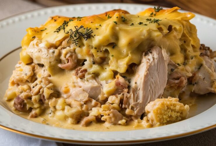 This Chicken and Dressing Casserole is the ultimate comfort food, combining tender shredded chicken, creamy soup, and flavorful cornbread stuffing in a single dish. Perfect for family dinners or holiday gatherings, it’s easy to prepare and always a crowd-pleaser! Ingredients: Instructions: Nutrition (Per Serving): ...
