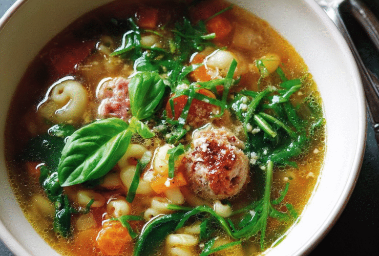 Introduction Did you know that Italian Wedding Soup isn’t actually served at weddings in Italy? The name “Minestra Maritata” (meaning “married soup”) refers to the beautiful marriage between meat and greens — not a ceremony! This Soupe de Mariage Italienne is a heartwarming blend of tender meatballs, soft pasta, and fresh vegetables simmered in a savory broth. Loved for its ...