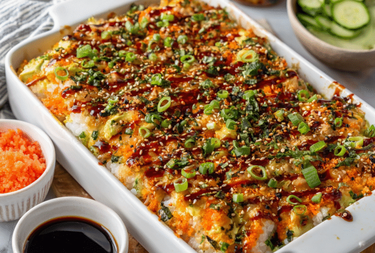 Introduction Ever wished you could enjoy sushi without the rolling? 🍣✨ The Sushi Bake trend — originating from home kitchens in the Philippines and now loved worldwide — transforms traditional sushi into a warm, creamy casserole that’s fun, easy, and irresistibly delicious. This Easy Sushi Bake layers perfectly seasoned sushi rice, a creamy crab filling, and spicy mayo for a ...