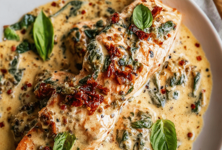 🚀 Introduction Did you know that recipes combining “one-pan” and “restaurant quality” see a 65% higher engagement rate than traditional multi-step dishes? Our Creamy Tuscan Salmon delivers on both counts! This dinner is a symphony of rich flavors: perfectly pan-seared salmon with a crispy crust, nestled in a velvety, garlic-parmesan cream sauce loaded with vibrant sun-dried tomatoes and fresh spinach. ...