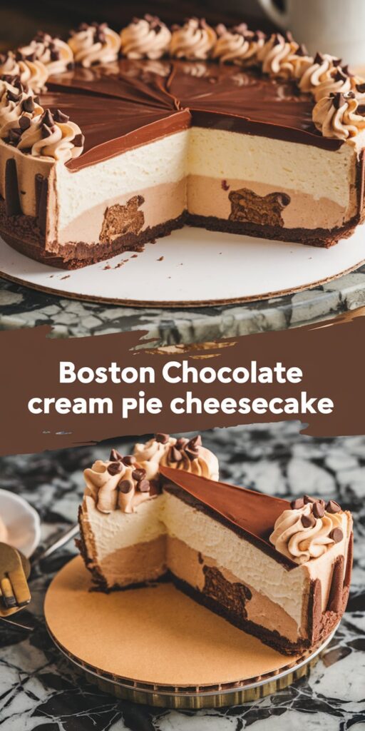 • Once the cheesecake is fully chilled and set, spread a thin layer of vanilla pudding over the top. This will mimic the classic Boston cream pie filling.