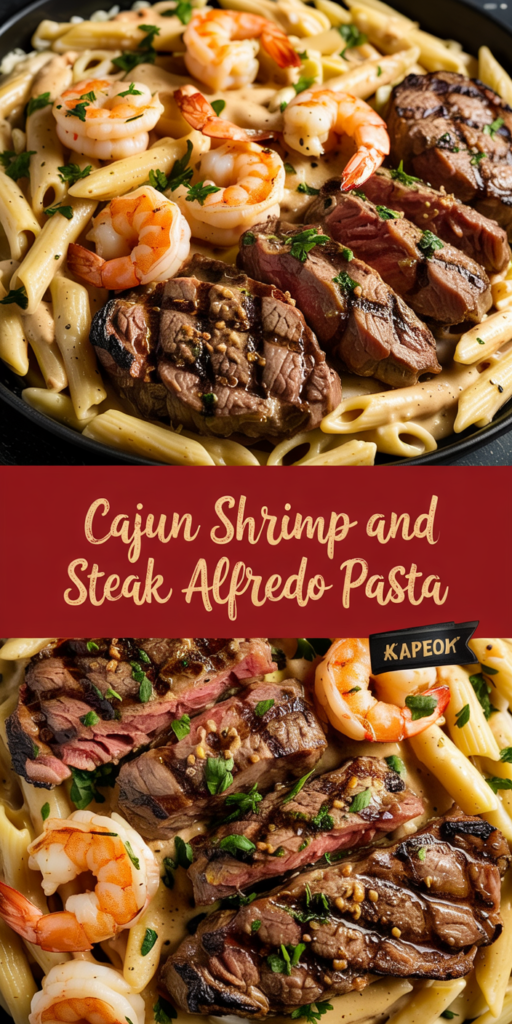 This Cajun Shrimp and Steak Alfredo Pasta blends Italian creaminess with bold Cajun spices in a protein-rich, flavorful dish. With perfectly seared steak strips, succulent shrimp, and a velvety sauce coating al dente pasta, it delivers restaurant quality in just 45 minutes. The balanced combination of spice, richness, and texture creates an unforgettable dining experience.