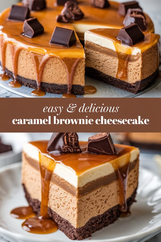 - Assemble the Caramel Brownie Cheesecake: