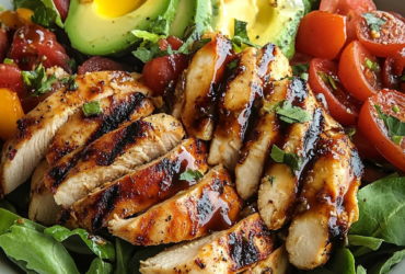 Grilled Shrimp Bowl with Avocado, Corn Salsa & Creamy Garlic Sauce
