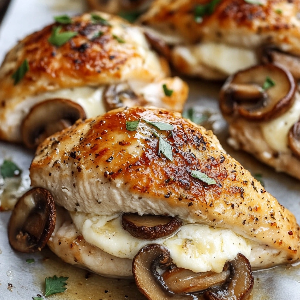 This dish always impresses at dinner parties because it looks gourmet but is surprisingly easy to make. The garlic butter and cheese blend with mushrooms inside the chicken creates a juicy, flavorful bite every time. It’s a fantastic recipe to try when you want to treat yourself or loved ones.