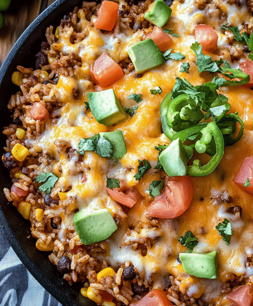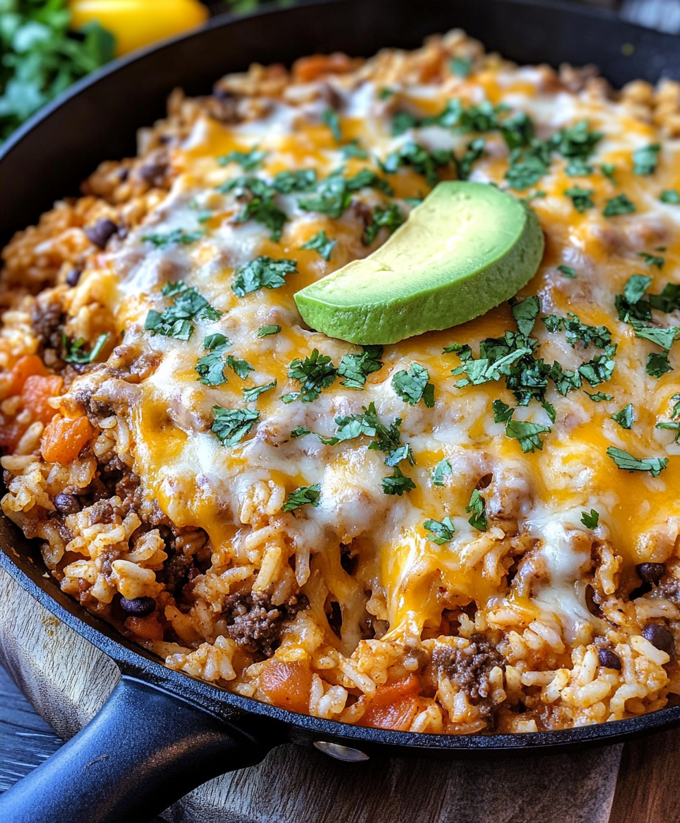 When you’re craving something hearty, cheesy, and full of bold Mexican flavors, this Cheesy Taco Rice Skillet is the answer! Made in just one pan, this easy dinner combines savory taco-seasoned beef, fluffy rice, and gooey melted cheese — all in under 40 minutes. It’s perfect for busy weeknights, meal prep, or feeding a hungry crowd.