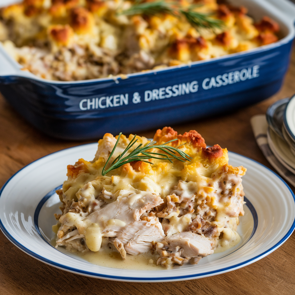This Chicken and Dressing Casserole is the ultimate comfort food, combining tender shredded chicken, creamy soup, and flavorful cornbread stuffing in a single dish. Perfect for family dinners or holiday gatherings, it’s easy to prepare and always a crowd-pleaser!