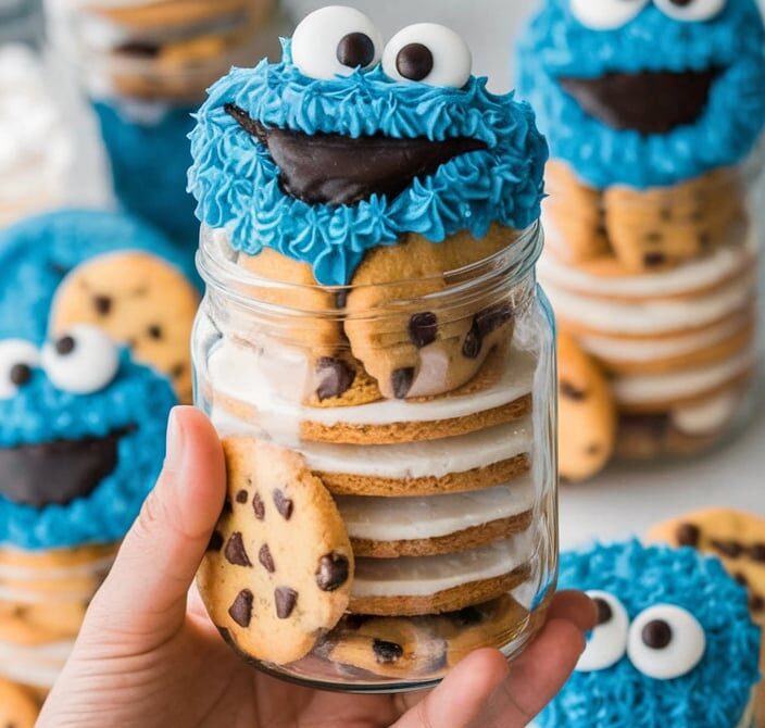 These Cookie Monster Cake Jars are a fun and whimsical dessert that are sure to be a hit at any party! Made with layers of moist vanilla cake, rich blue buttercream frosting, and chunks of delicious cookies, these adorable little jars are a fun twist on traditional cake. They’re perfect for birthdays, themed parties, or just as a creative dessert to share with loved ones!