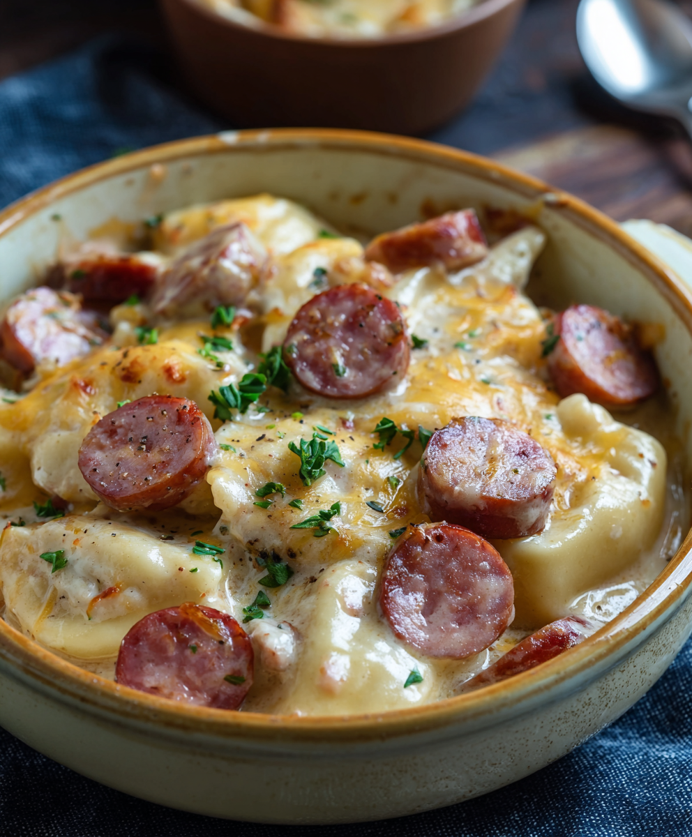 Cozy Crockpot Pierogi Casserole with Kielbasa