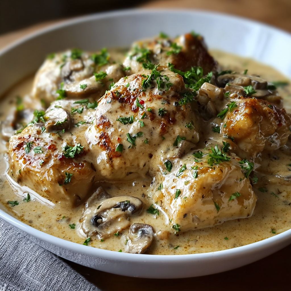 Once cooked, stir and shred the chicken into the sauce if desired — or serve whole with sauce ladled on top.