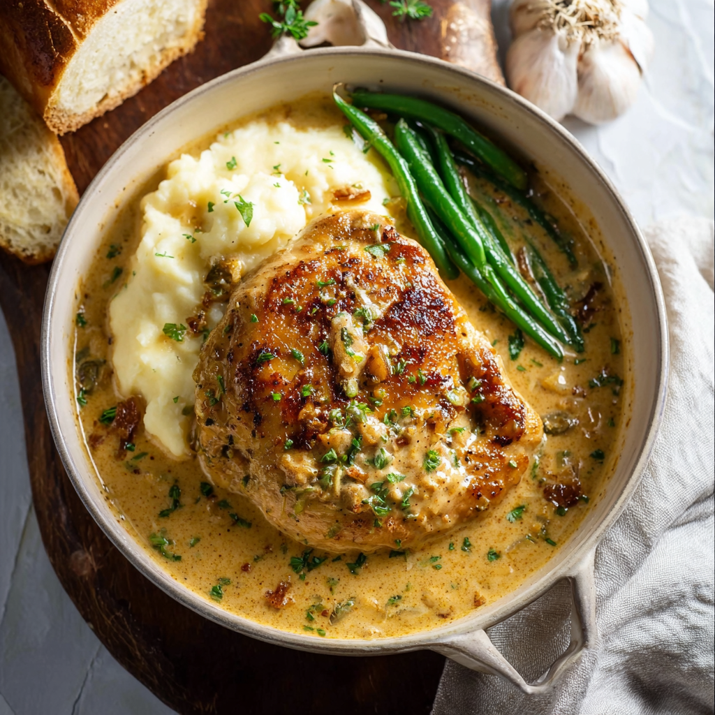 Why do creamy chicken recipes sometimes taste heavy and overly rich, while others feel comforting, silky, and deeply flavorful? The difference comes from balancing fat, acidity, and aromatics. This Poulet Crémeux à l’Ail (Creamy Garlic Chicken) achieves that perfect balance using tender seared chicken, gently caramelized garlic, and a velvety cream sauce with just the right touch of seasoning.
