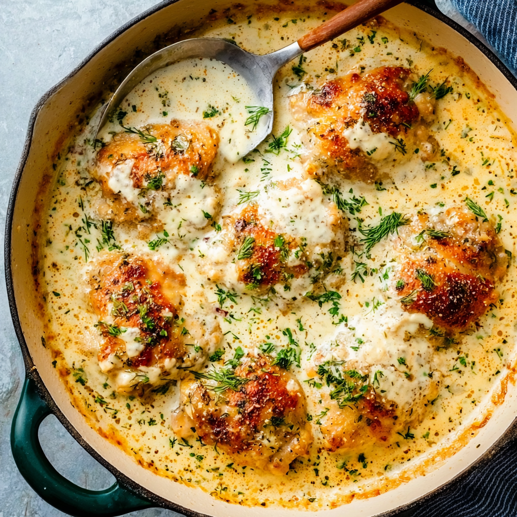 These Creamy Oven Baked Chicken Thighs are pure comfort in every bite — tender meat, crispy skin, and a velvety sauce that’s irresistible. Easy to prepare and packed with flavor, it’s a meal you’ll come back to again and again.