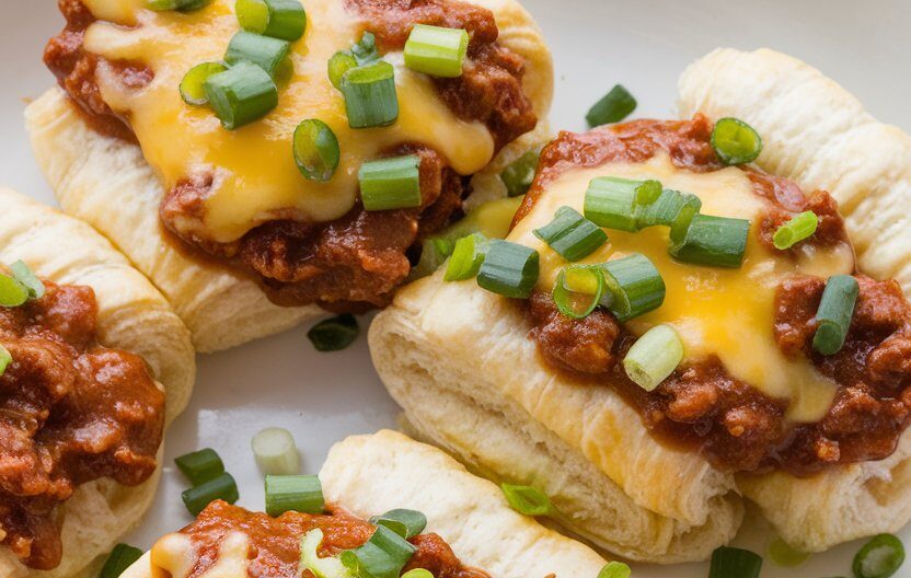 - Garnish: Top your crescent roll chili dogs with shredded cheddar cheese, diced onions, sliced jalapeños, or any other toppings of your choice.