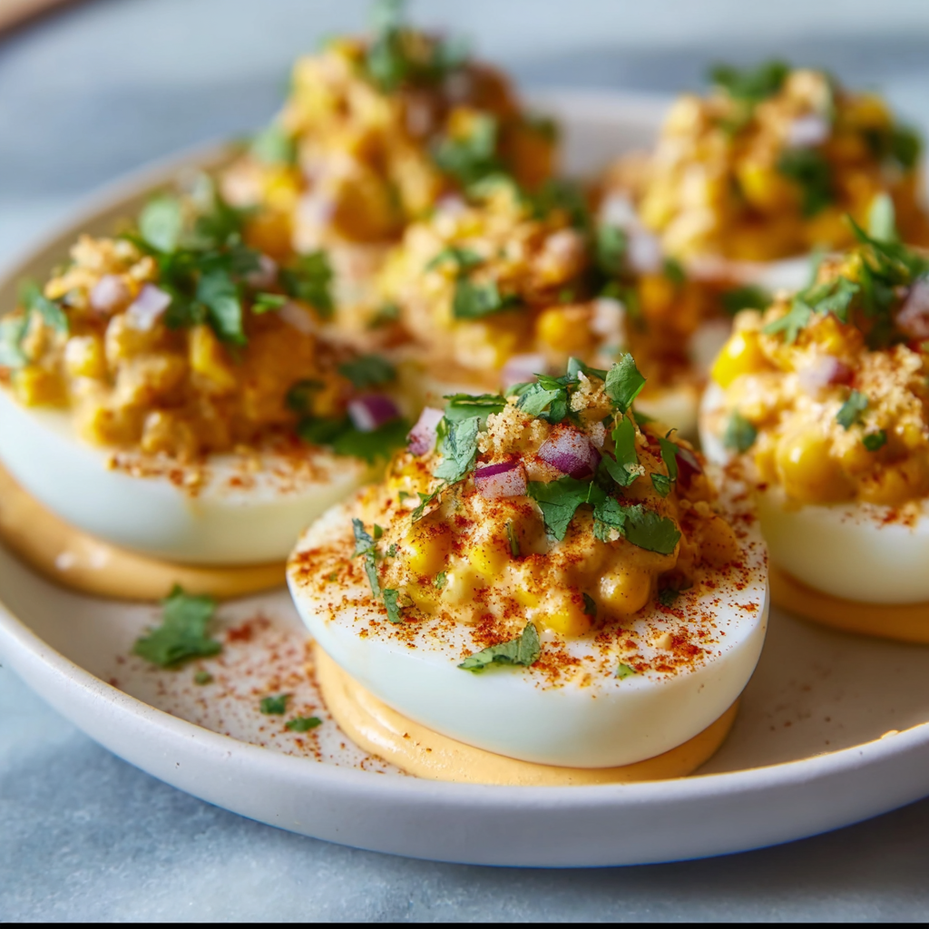 Elote Deviled Eggs with Chipotle Mayo