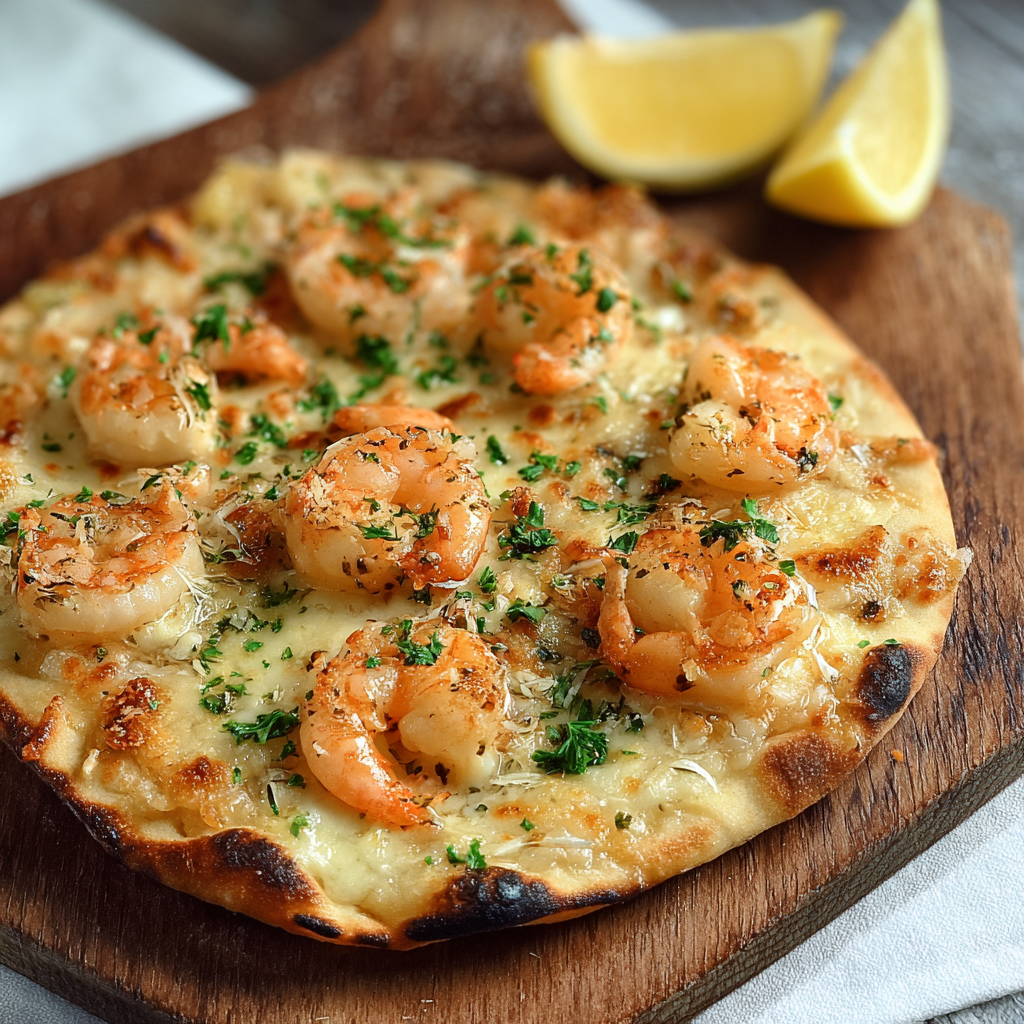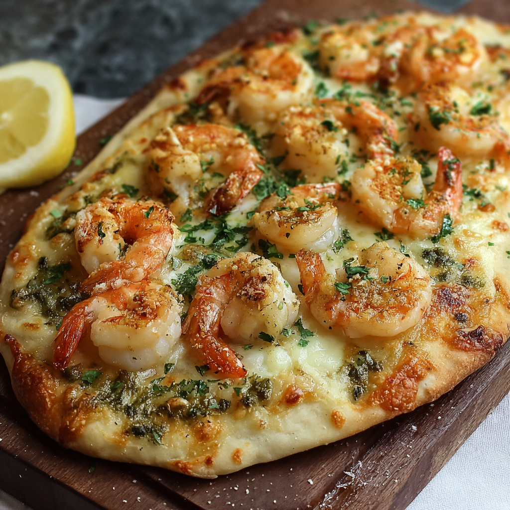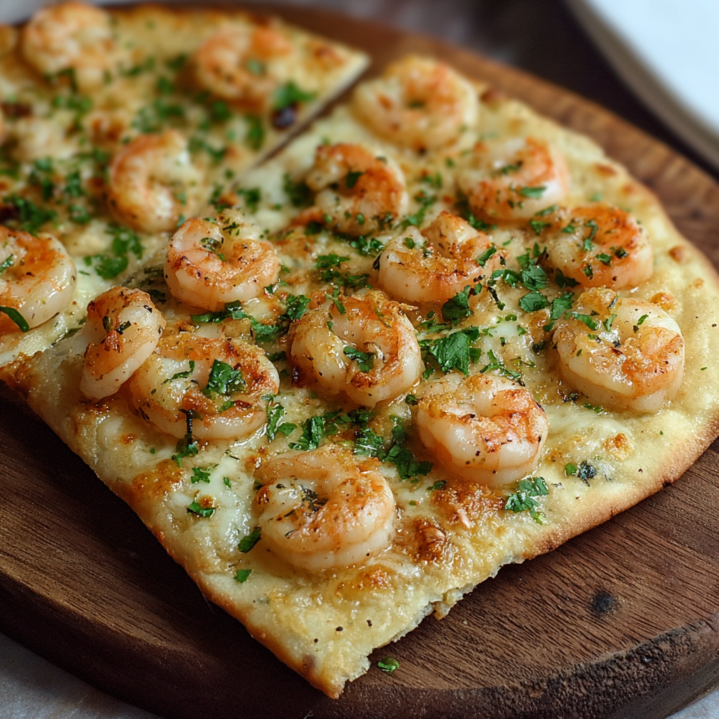 With juicy shrimp sautéed in garlic and butter, a crisp golden flatbread base, and a sprinkle of Parmesan and fresh herbs, this dish is Mediterranean-inspired comfort food you’ll crave again and again.