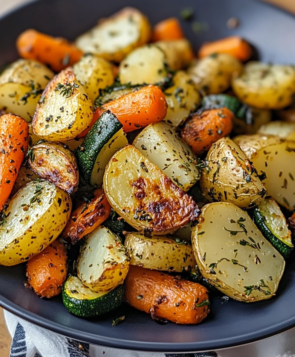 This dish brings together the earthy comfort of baby potatoes, the natural sweetness of carrots, and the soft, buttery texture of zucchini, all roasted with olive oil, garlic, and a medley of herbs. Perfect for weeknight dinners, meal prep, or a crowd-pleasing holiday spread, it’s healthy comfort food at its best.