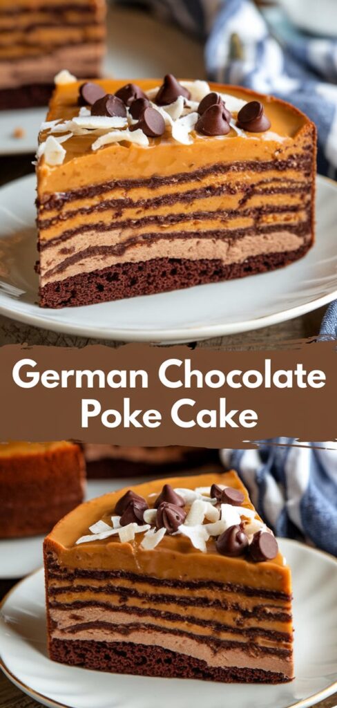This German Chocolate Poke Cake is a rich and decadent dessert that elevates the classic German chocolate cake into a moist, gooey treat. The cake is filled with sweetened condensed milk and caramel, creating a luscious texture, then topped with a homemade coconut-pecan frosting that delivers the signature flavors everyone loves. It’s perfect for birthdays, holidays, or whenever you’re craving something extra indulgent!