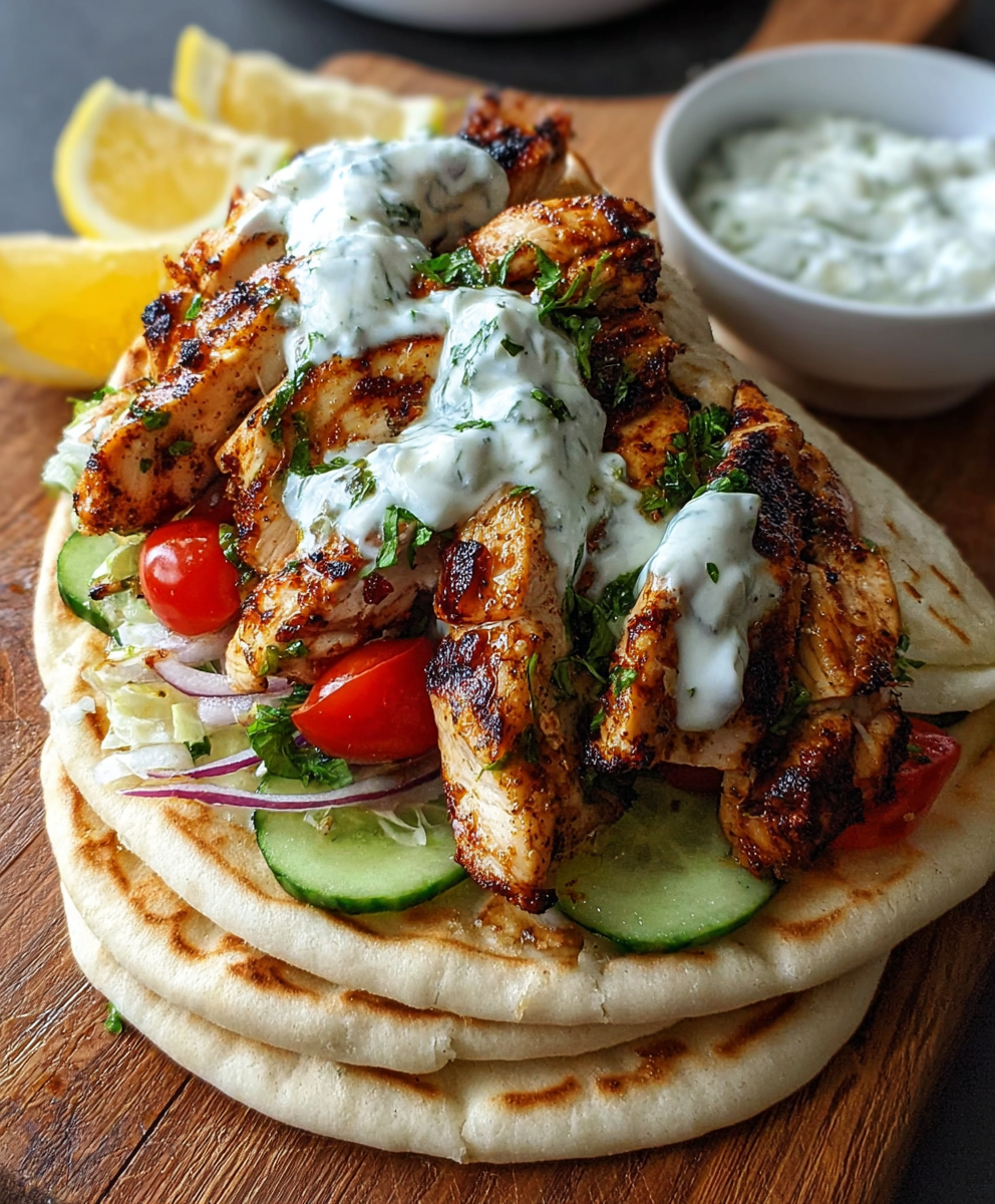 Transport your taste buds to the Mediterranean with these Greek Chicken Gyros. Marinated in a zesty lemon-herb blend and wrapped in warm pita with creamy homemade tzatziki, these gyros are bursting with fresh, bold flavor. Perfect for meal prep, family dinners, or casual summer feasts.