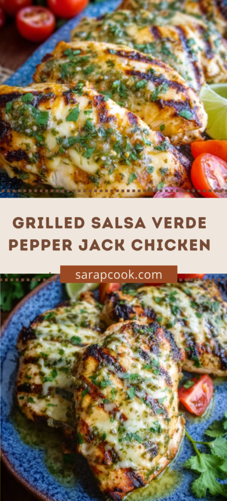 In the last 1–2 minutes of grilling, top each chicken breast with a slice of pepper jack cheese and a generous spoonful of salsa verde. Cover grill or tent with foil to melt cheese.