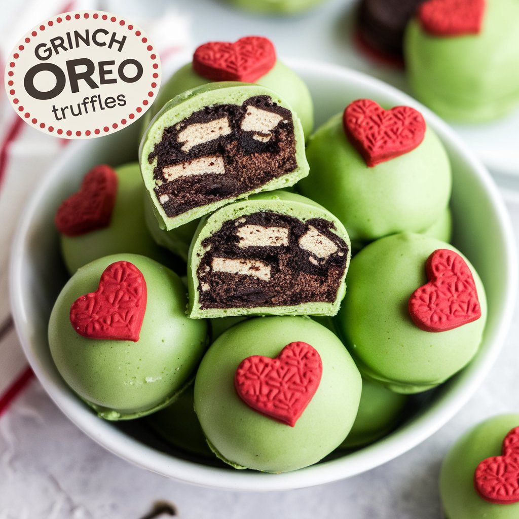 These Grinch Christmas Truffles are a fun, no-bake holiday treat inspired by the classic green character! With a creamy white chocolate center, vibrant green coating, and a candy heart, they’re perfect for parties, gifting, or just spreading some holiday cheer.