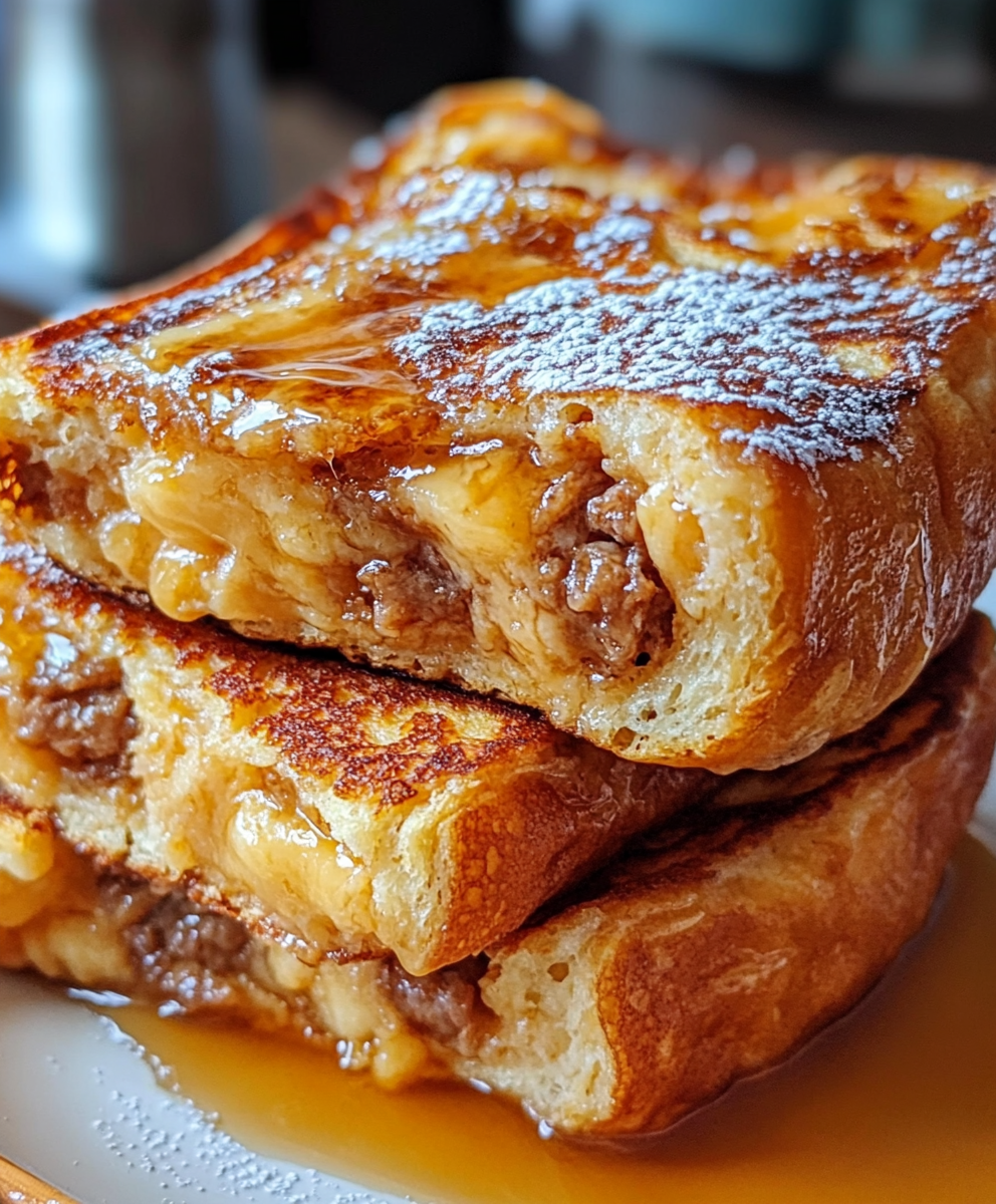 Once cooked, remove the French toast from the skillet and serve warm. Drizzle with maple syrup, dust with powdered sugar, and top with fresh fruit for a delightful presentation.