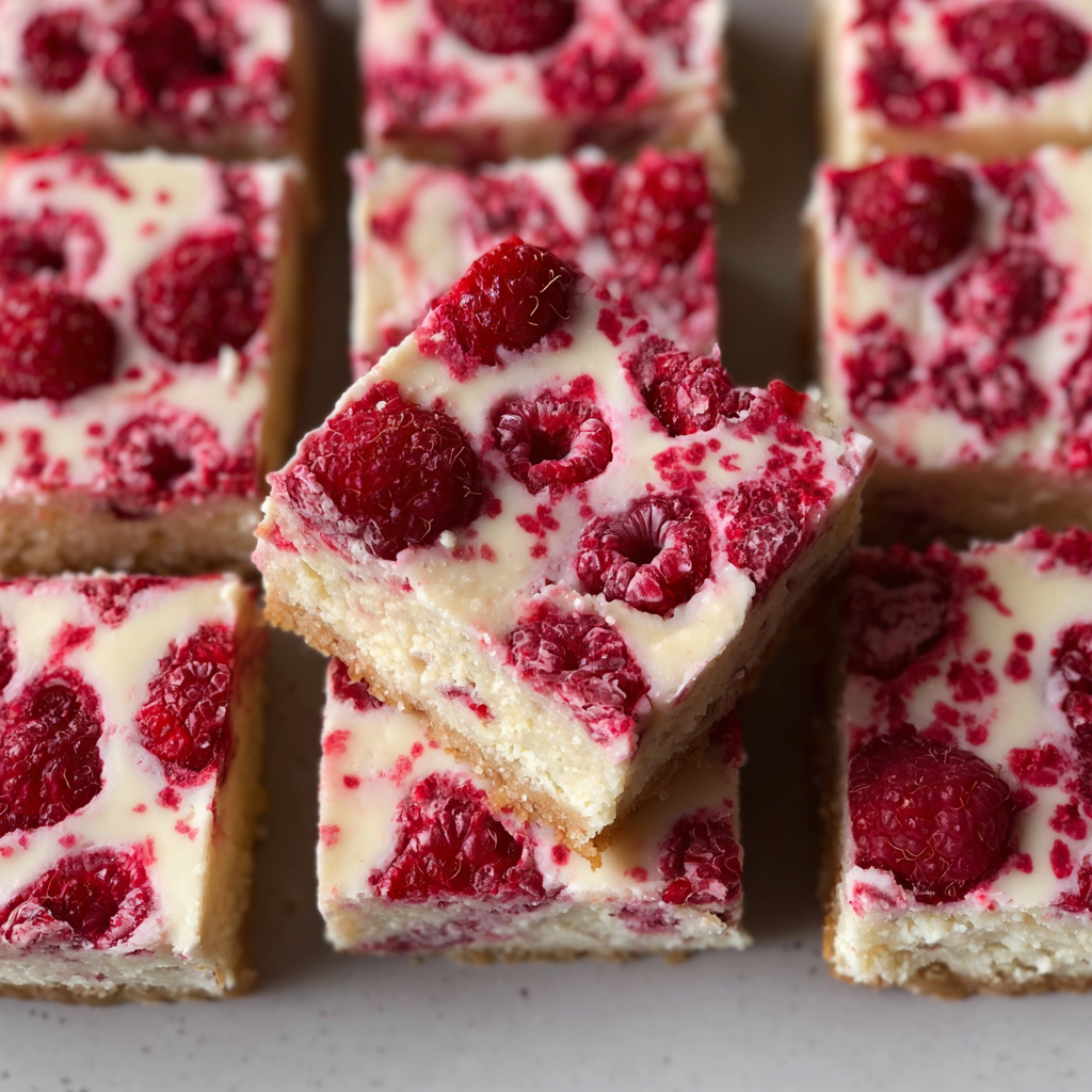 Slice into squares and serve chilled. Each bite combines creamy cheesecake with a tangy raspberry twist — the perfect balance of indulgence and freshness! 🍓✨