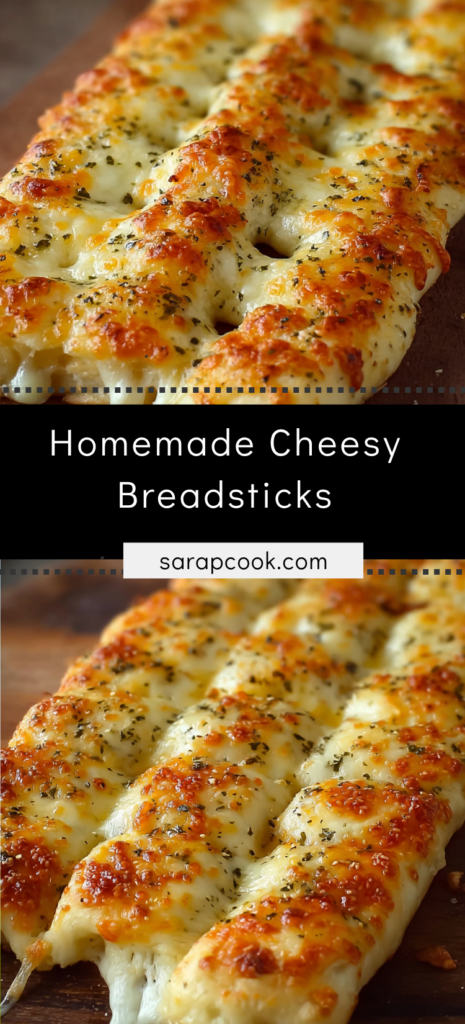 These Homemade Cheesy Breadsticks are everything you want in a cheesy snack—warm, garlicky, and totally irresistible. Great for sharing… or not!
