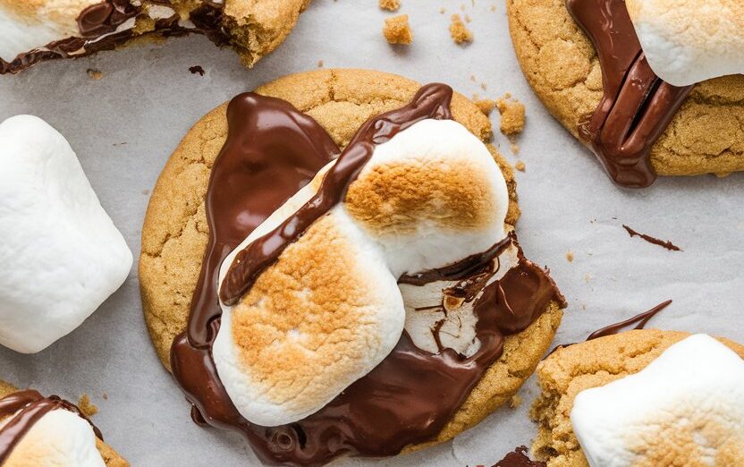 - Bake the cookies: Bake for 8-10 minutes, or until the edges are golden brown but the centers are still soft. Remove from the oven and immediately press a few extra mini marshmallows on top of each cookie for that gooey, s’mores effect.