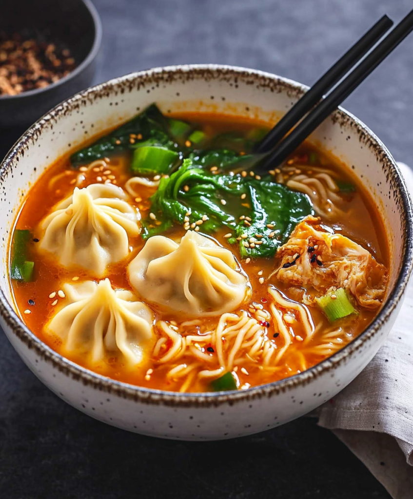 This Kimchi Noodle Soup with Dumplings is the ultimate bowl of comfort for spice lovers. It combines the fiery tang of fermented kimchi, slurp-worthy noodles, and tender dumplings in a rich, savory broth that warms you from the inside out. Whether you’re under the weather or just craving something cozy and bold, this Korean-inspired dish is a one-pot wonder you’ll want to make on repeat.
