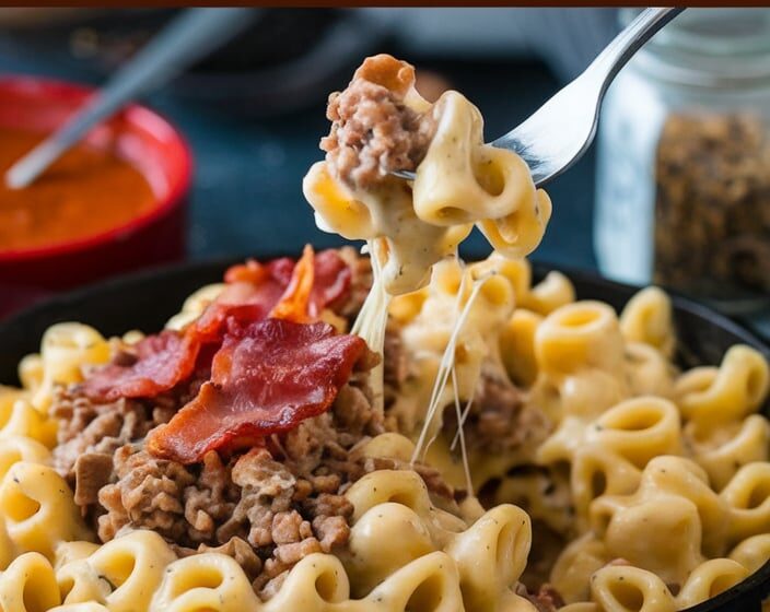 Loaded Bacon Cheeseburger Alfredo Pasta