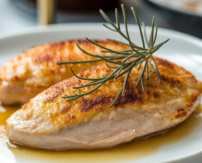 - Cook the chicken: Sear the chicken for about 5-7 minutes per side, or until the chicken is golden brown and fully cooked through (internal temperature should be 165°F or 75°C). Remove the chicken from the skillet and set aside.