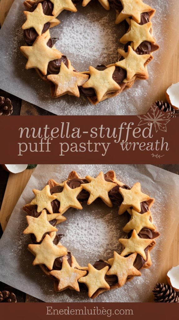 7. Bake the Wreath: Bake in the preheated oven for 20-25 minutes, or until the puff pastry is golden brown and puffed up. The Nutella should be melted and bubbly inside.