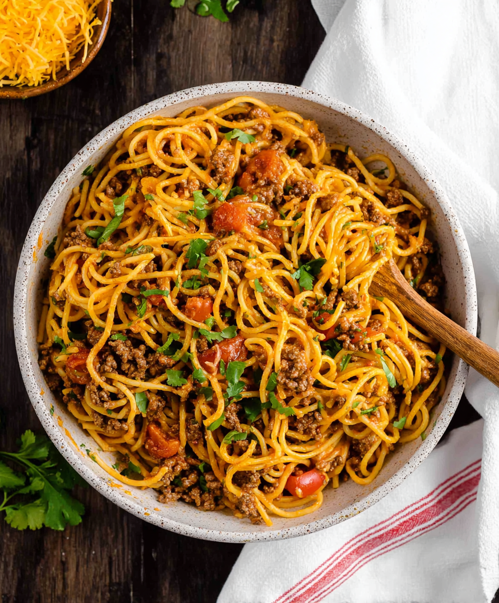 This One-Pot Taco Spaghetti is the ultimate dinner mashup—quick, comforting, and full of Tex-Mex flavor. It’s perfect for busy nights and picky eaters alike. Give it a try and spice up your spaghetti routine!