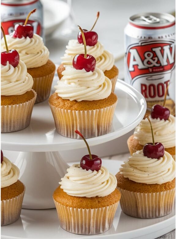 - Garnish (optional): Top each cupcake with a dollop of whipped cream and a cherry, or add a fun straw for a root beer float vibe!