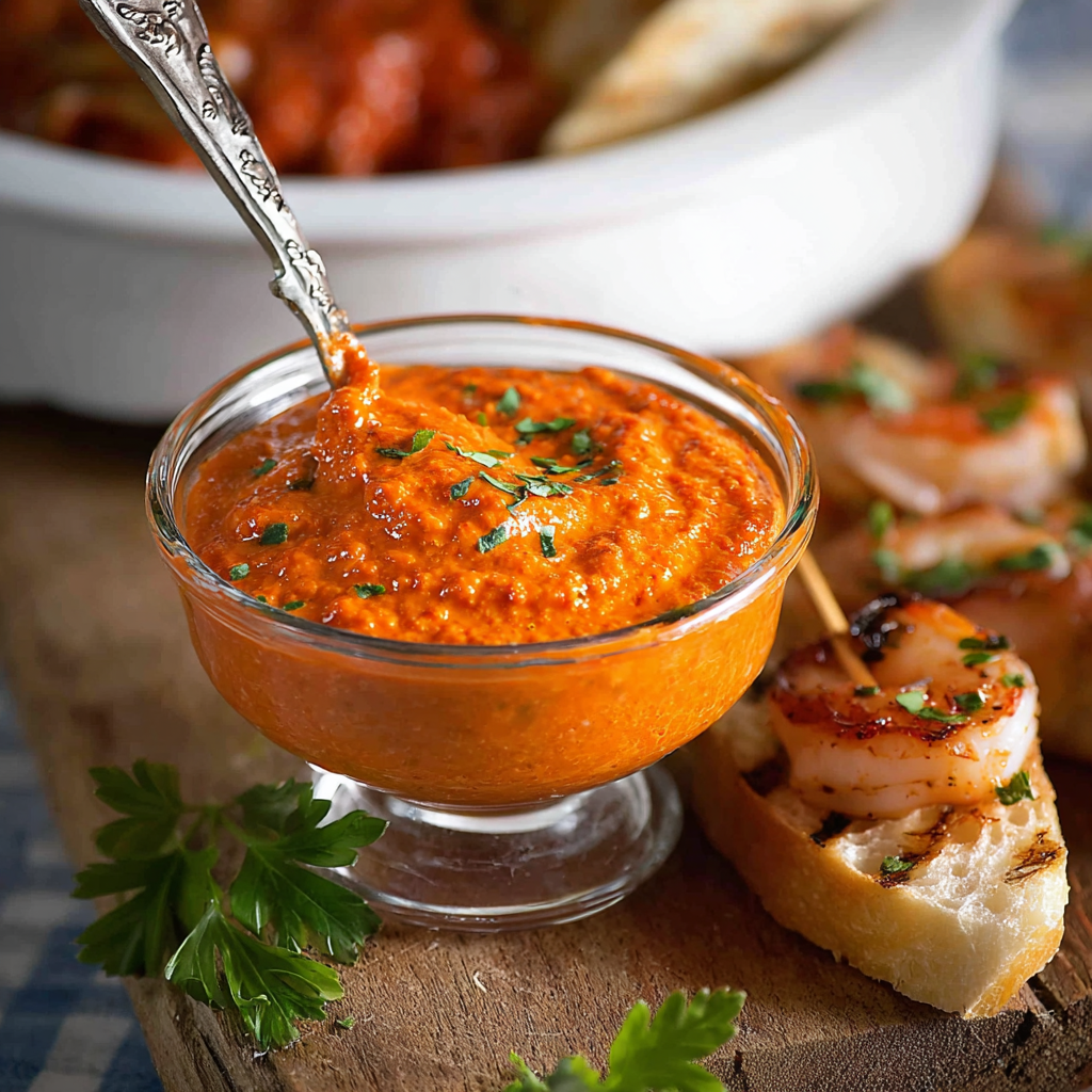 Have you ever tried a sauce so rich, smoky, and versatile that it instantly upgrades everything it touches? That’s exactly what Sauce Romesco Facile does. Originating from Catalonia, Spain, this vibrant red sauce combines roasted red peppers, almonds, tomatoes, garlic, and olive oil to create a nutty, smoky, and slightly tangy flavor explosion. Perfect with grilled vegetables, fish, chicken, or even as a dip for crusty bread — this quick and easy Romesco sauce is ready in minutes and guaranteed to impress.