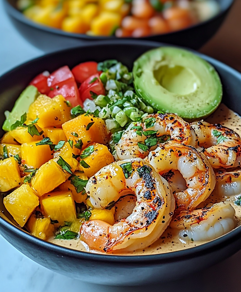 Q: Can I make this recipe ahead of time for meal prep? A: Yes! Prepare the mango salsa, lime-chili sauce, and cook the shrimp up to 2 days ahead. Store components separately and assemble just before eating. For best results with meal prep, keep the avocado whole until ready to serve.