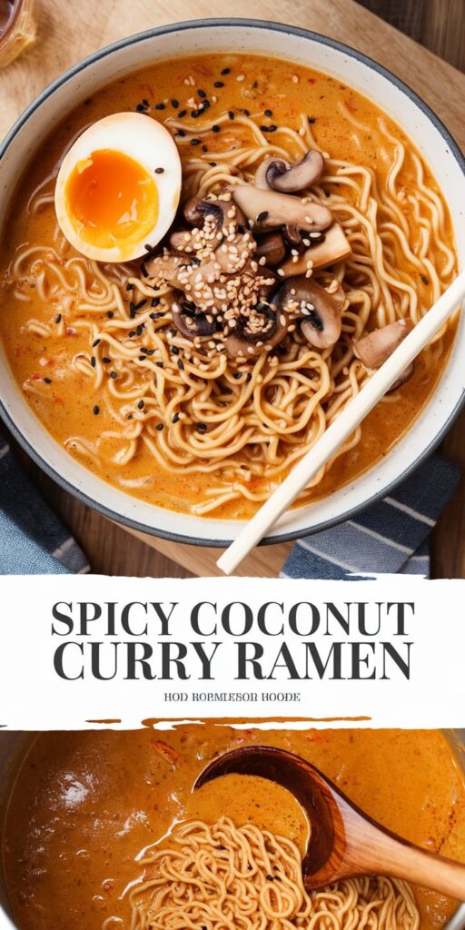 - Assemble the ramen bowls: Divide the cooked ramen noodles and vegetables into bowls. Ladle the spicy coconut curry broth over the top.