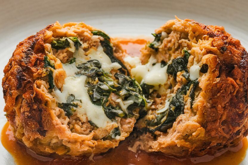 - Take about 1-2 tablespoons of the meat mixture, flatten it in your palm, and place a cube of mozzarella cheese in the center. Mold the meat around the cheese, sealing it inside, and form it into a ball. Repeat with the remaining mixture.