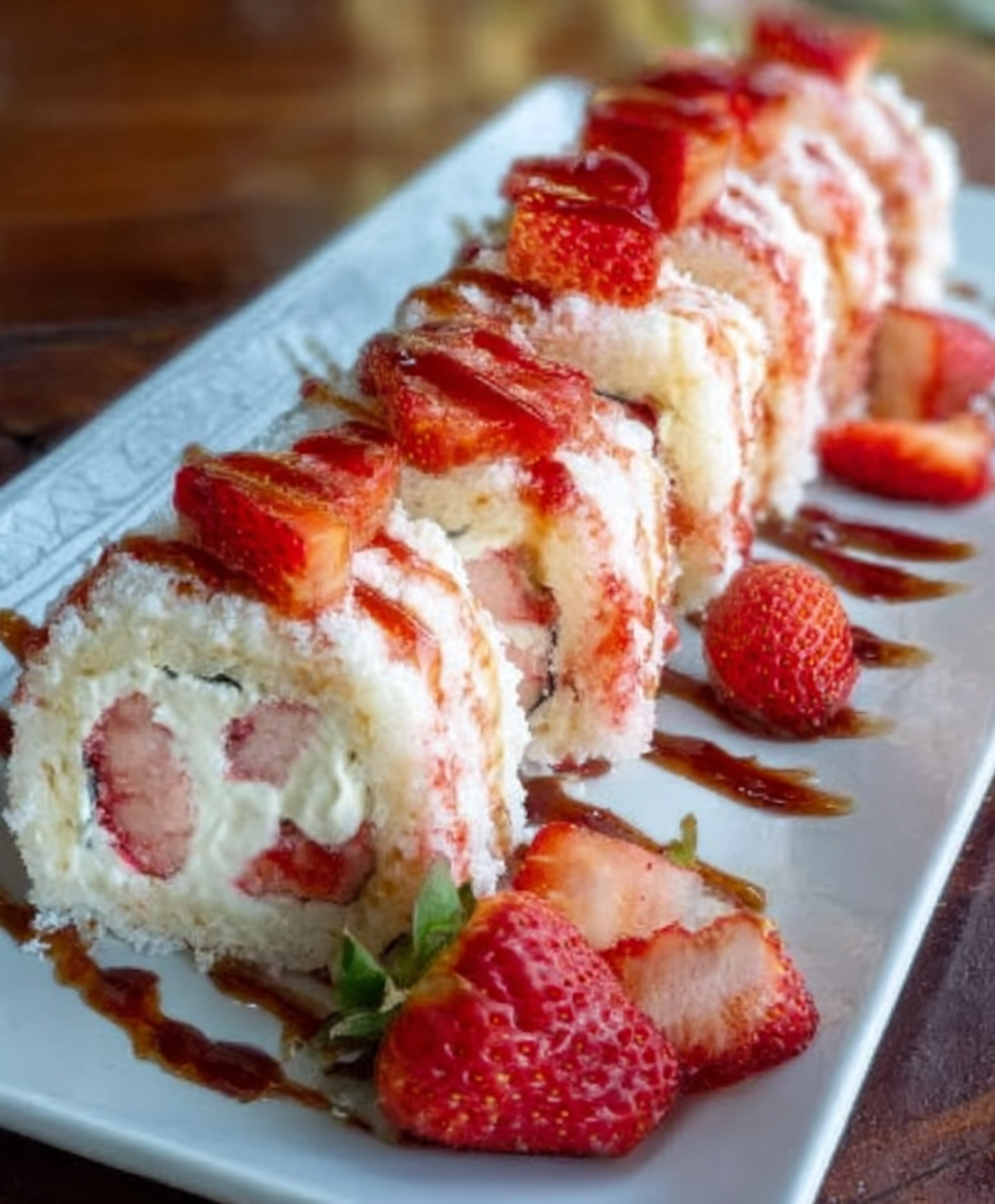What happens when dessert meets sushi? You get Strawberry Shortcake Sushi Rolls — the viral TikTok dessert that’s stealing hearts (and taste buds). According to Pinterest trend data, “dessert sushi” searches jumped +180% this year, and it’s easy to see why: it’s fun, elegant, and totally customizable.