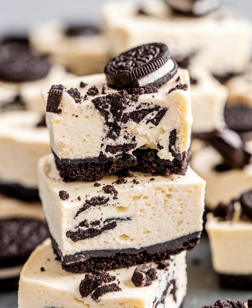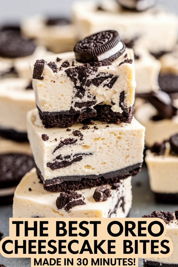 1. Garnish: Before serving, sprinkle the crushed Oreo cookies on top of each cheesecake bite for an extra burst of Oreo flavor and texture.